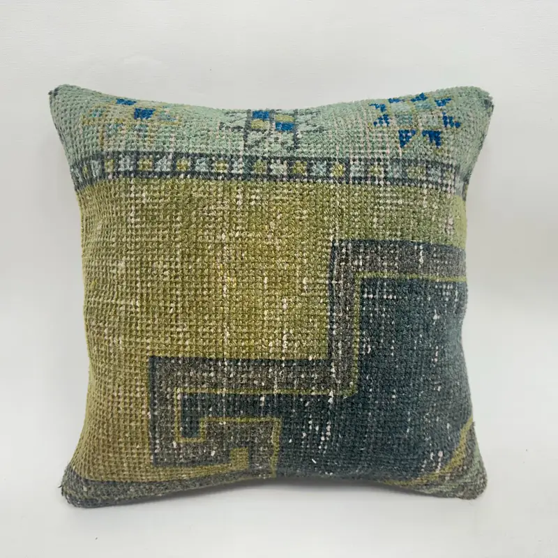 Handcrafted Southwestern Green & Gray Throw Pillow, Embroidered Linen Cushion