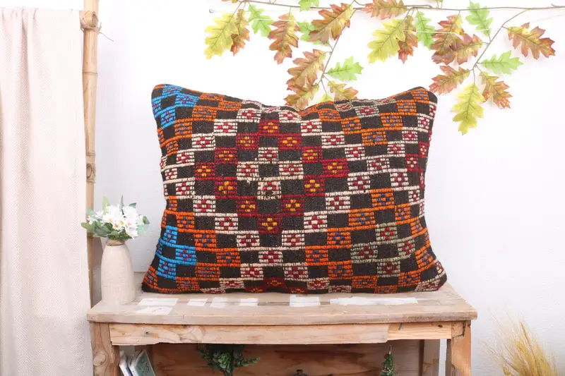 Orange & Bronze Embroidered Throw Pillow, 20x28 Handmade Cushion