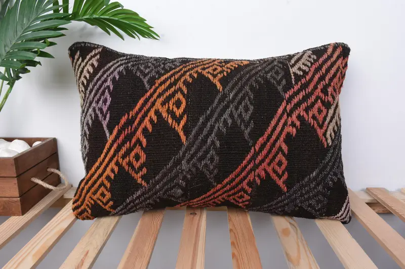 Brown & Red Geometric Embroidered Pillow, Handmade Throw Pillow