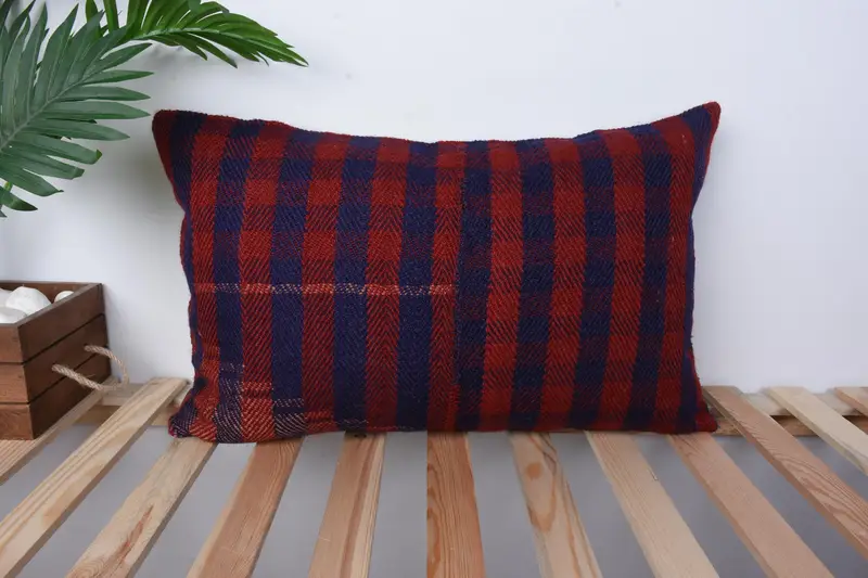 Blue & Brown Striped Throw Pillow, 16x24 Embroidered Pillow