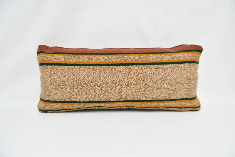 Beige & Orange Striped Throw Pillow, Versatile Rectangle Pillow