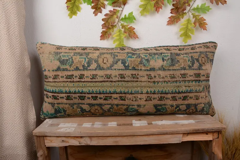 Blue & Beige Patchwork Throw Pillow, Handmade Embroidered Pillow
