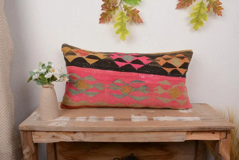 Embroidered Southwestern Pink Pillow, 12x24 Handmade Throw Pillow