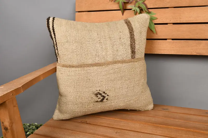 Beige & Brown Patchwork Throw Pillow, 16x16 Embroidered Cushion