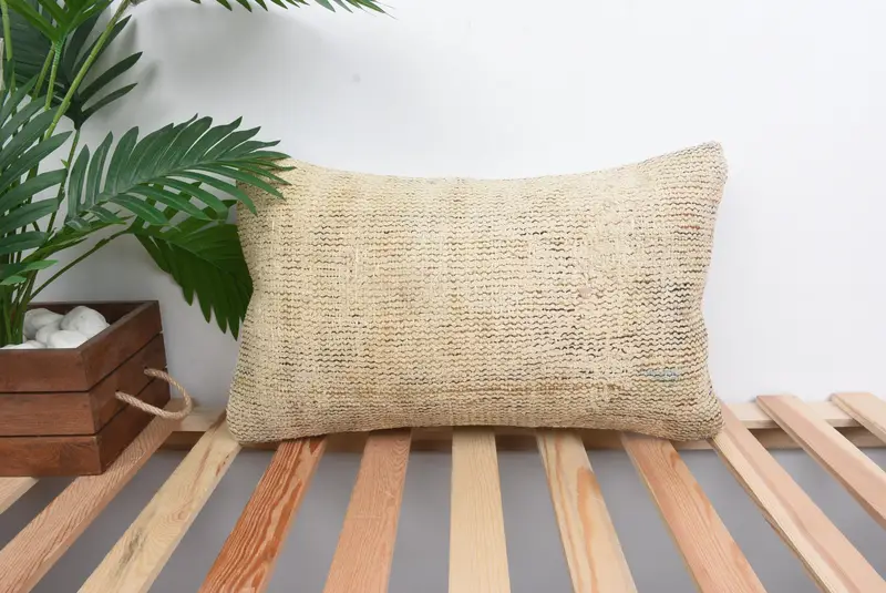Handmade Southwestern Embroidered Pillow, Vintage Beige & Orange Throw Pillow