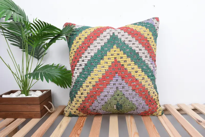Brown & Green Embroidered Throw Pillow, Handmade Vintage Cushion