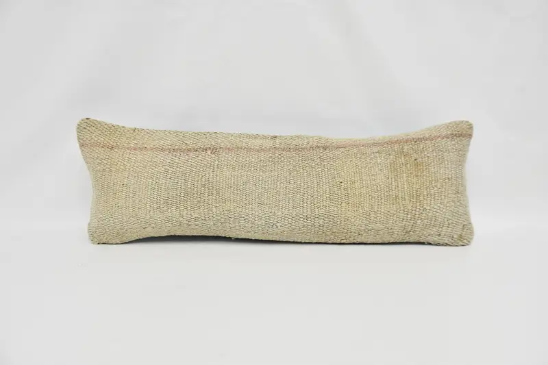 Beige & Pink Embroidered Throw Pillow, Handmade Hemp Cushion