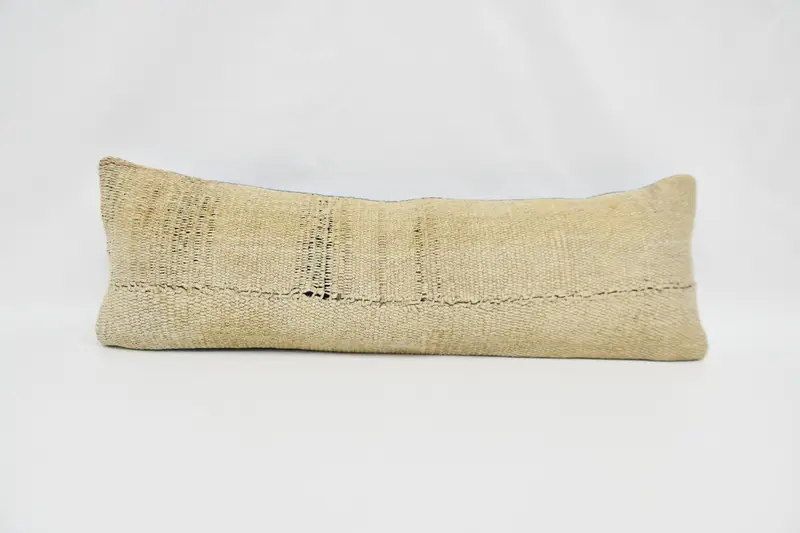Beige Paisley Throw Pillow, 12x36 Handmade Cushion