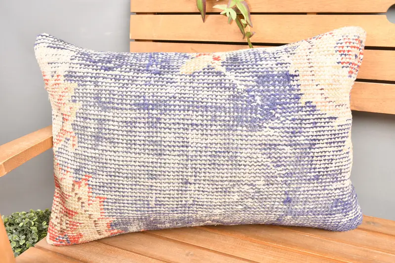 Blue & Beige Striped Throw Pillow, Handmade Embroidered Cushion
