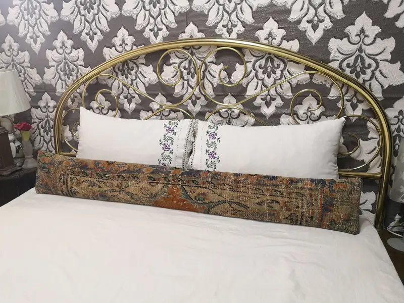 Handmade Wool Throw Pillow with Geometric Bronze Pattern, Vintage Rectangle Pillow