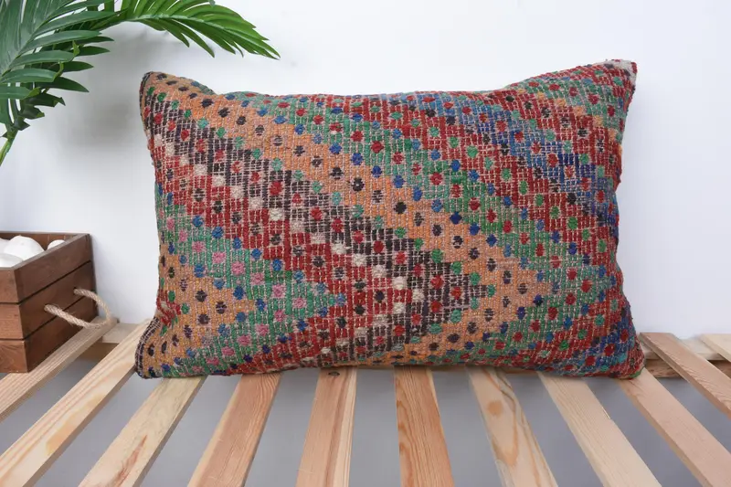 Red & Brown Striped Throw Pillow, Vintage Embroidered Pillow