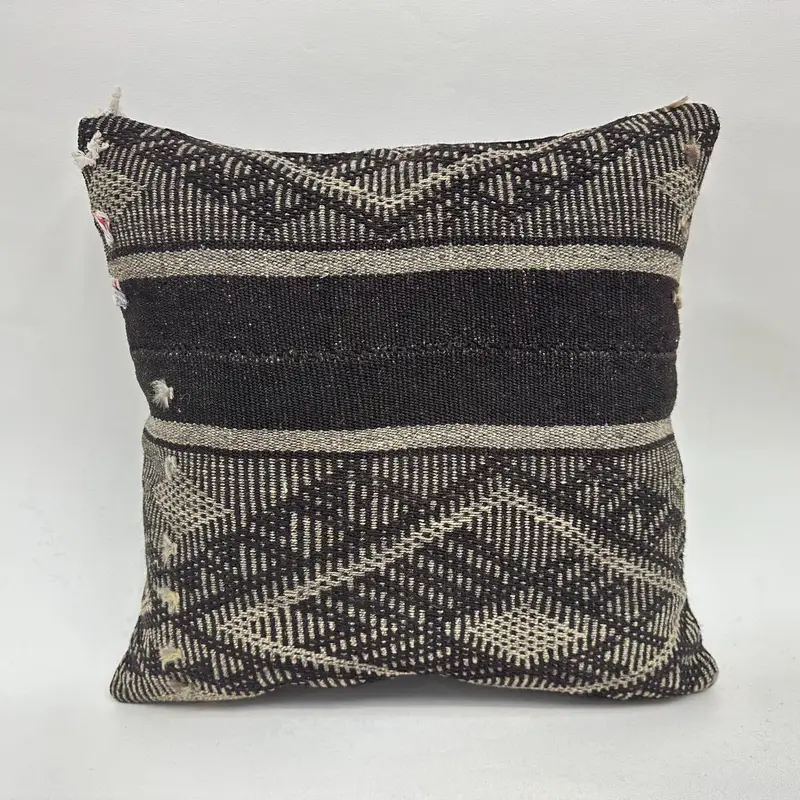 Geometric Beige & Brown Embroidered Pillow, Vintage Handmade Throw Pillow