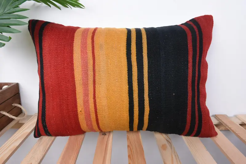 Brown & Red Striped Throw Pillow, Handmade Embroidered Pillow