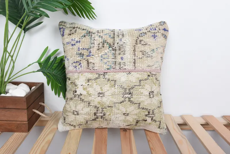 Green & Bronze Embroidered Throw Pillow, 16x16 Handmade Cushion