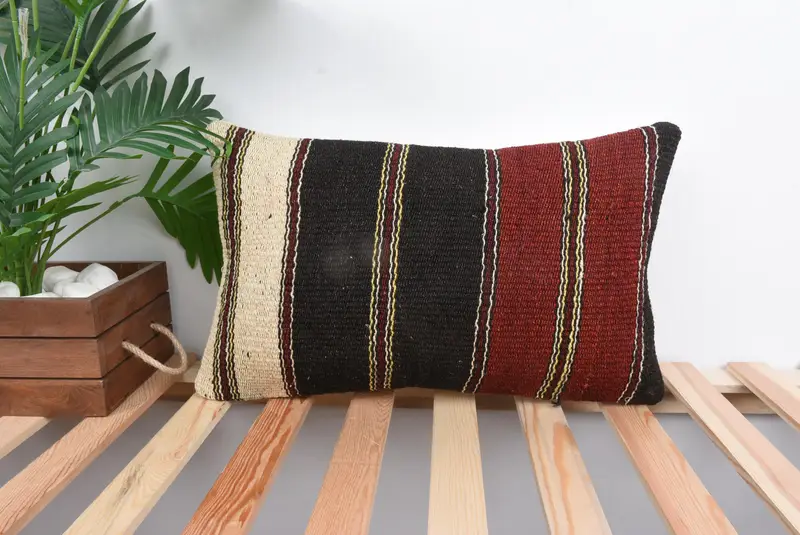 Brown & Red Striped Throw Pillow, Handmade Embroidered Pillow