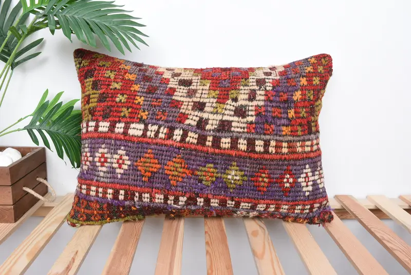 Blue & Orange Geometric Throw Pillow, Handmade Vintage Rectangle Pillow