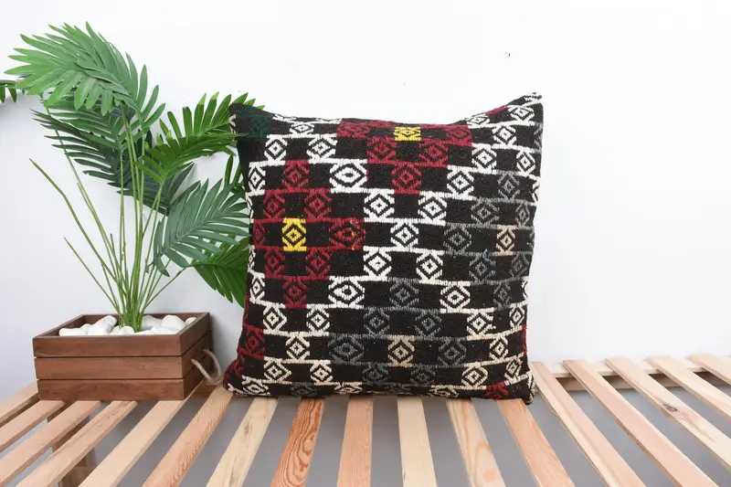 Geometric Embroidered Throw Pillow, 24x24 Vintage Cushion