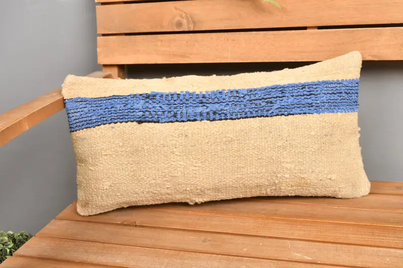 Beige & Bronze Striped Pillow, Embroidered Vintage Throw Pillow