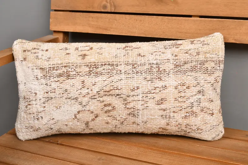 Embroidered Beige Pillow with Floral Pattern, 10x20 Throw Pillow