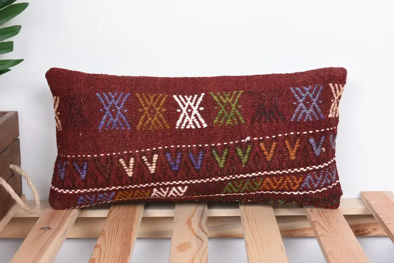 Red Southwestern Embroidered Pillow, 8x16 Handmade Throw Pillow