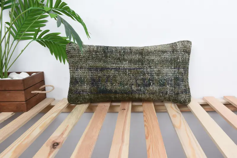 Handmade Southwestern Green Throw Pillow, 10x20 Embroidered Cushion