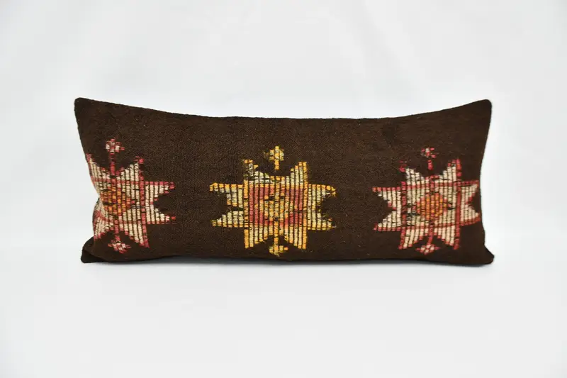 Brown & Yellow 16x36 Throw Pillow, Vintage Embroidered Pattern Pillow