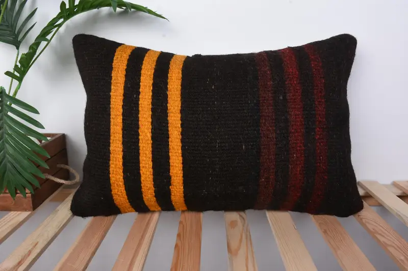 Brown & Orange Striped Linen Throw Pillow, Vintage Rectangular Cushion