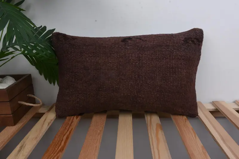 Brown Southwestern Embroidered Pillow, Handmade 12x20 Throw Pillow