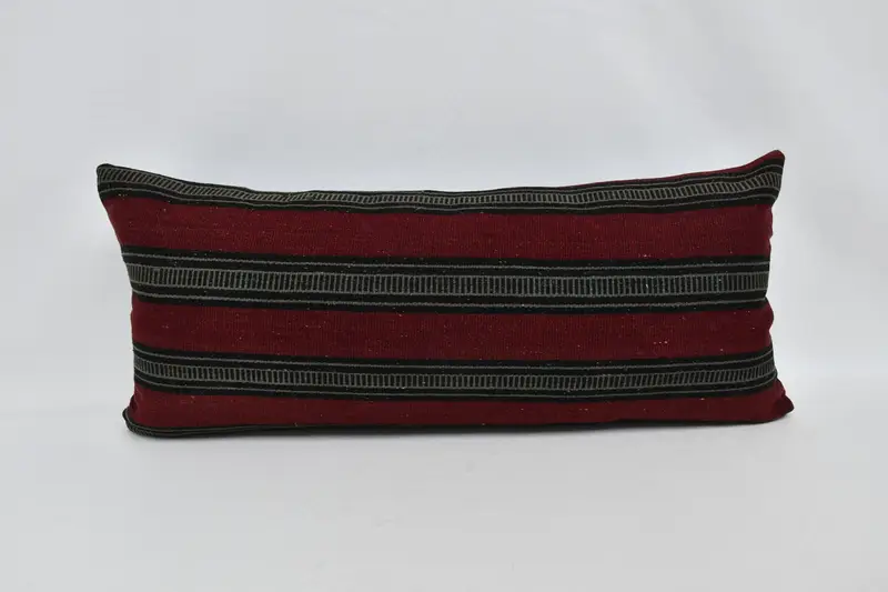 Red & Brown Striped Hemp Throw Pillow, Vintage Rectangle Pillow