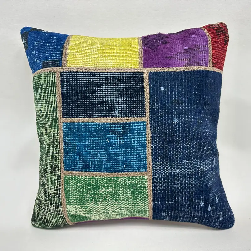 Purple & Yellow Patchwork Throw Pillow, 20x20 Vintage Embroidered Pillow