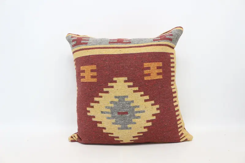 Red & Yellow Embroidered Throw Pillow, Handmade Cushion