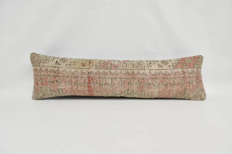 Red & Yellow 12x42 Embroidered Throw Pillow, Handmade Hemp Cushion