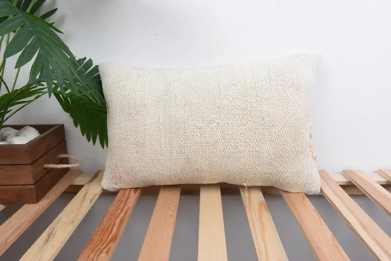 Handmade Southwestern Embroidered Pillow, Beige Linen Throw Pillow