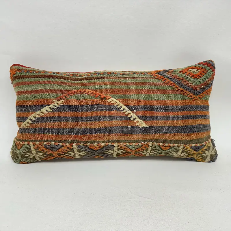 Orange & Bronze Striped Throw Pillow, Handmade Linen Cushion