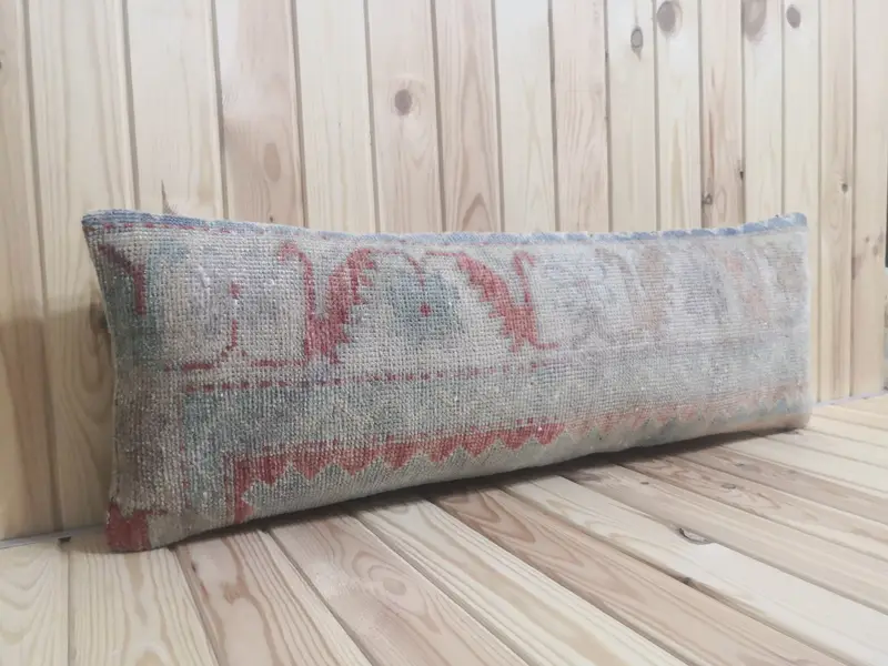 Handmade Wool Throw Pillow, Geometric Red & Gray Vintage Rectangle Pillow