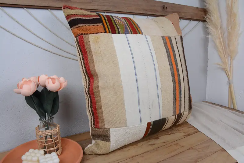 Embroidered Patchwork Throw Pillow, Versatile 28x28 Cushion for Living Room