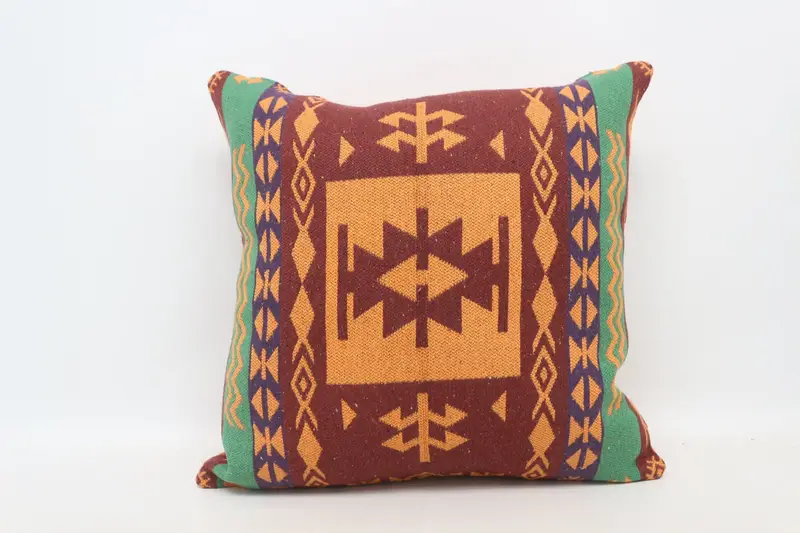 Red & Orange Embroidered Throw Pillow, Vintage Floral Cushion