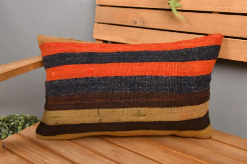 Brown & Bronze Striped Throw Pillow, Embroidered Vintage Pillow
