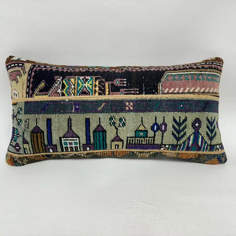 Gray & Brown Patchwork Throw Pillow, 12x24 Handmade Cushion