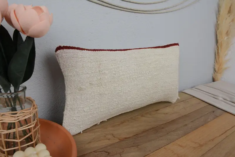 Embroidered Rectangle Throw Pillow, Striped Linen Pillow Cover