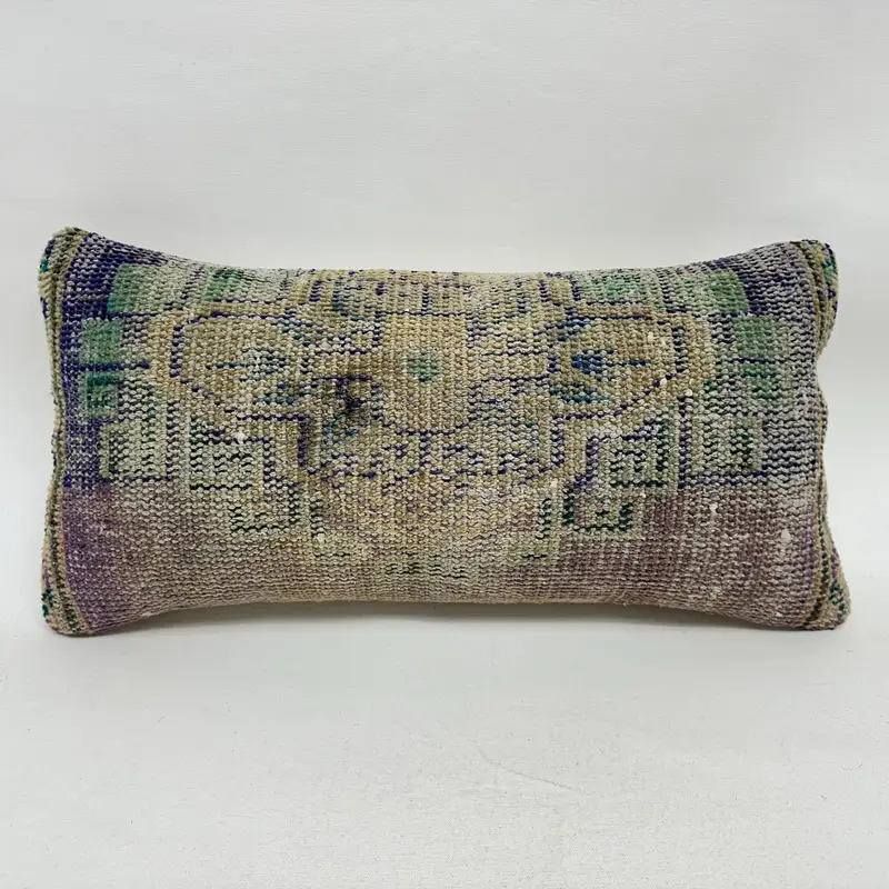 Blue & Gray Southwestern Throw Pillow, Handmade Embroidered Rectangle Pillow