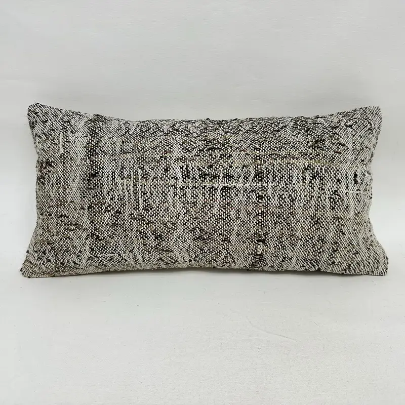 Handmade Southwestern Brown Linen Throw Pillow, 12x24 Embroidered Cushion