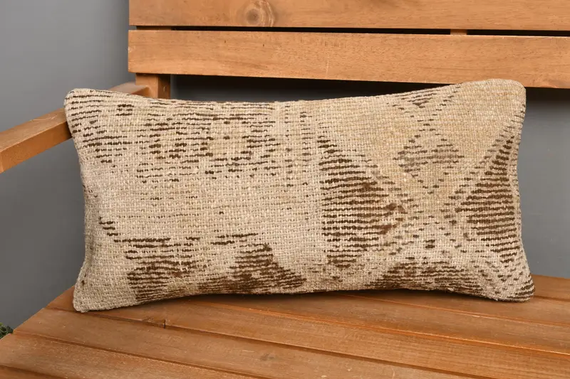 Handmade Beige & Brown Floral Throw Pillow, 10x20 Rectangle Pillow