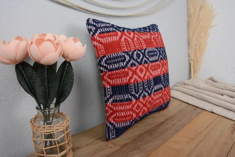 Red Geometric Throw Pillow, Vintage Embroidered Cushion