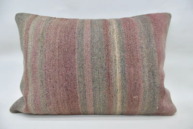 Handmade Striped Throw Pillow, 20x28 Blue & Beige Pillow
