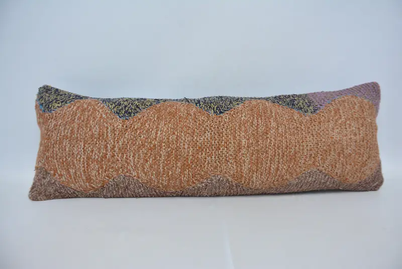 Orange & Bronze Geometric Throw Pillow, Handmade Hemp & Wool Cushion
