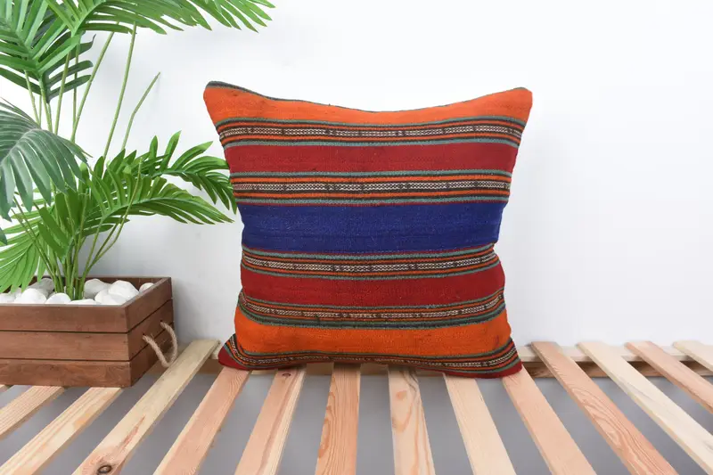 Orange & Red Striped Throw Pillow, 20x20 Vintage Cushion