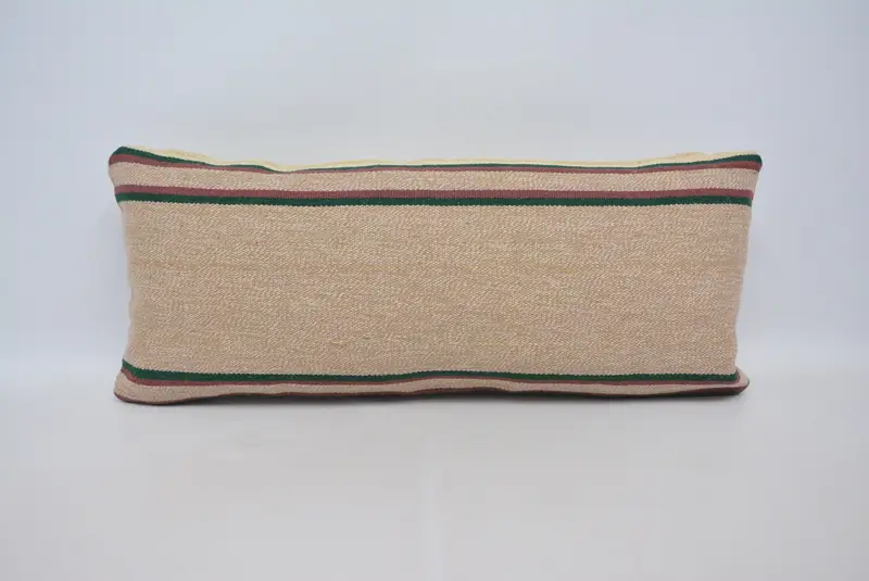 Gray & Brown Striped Throw Pillow, Handmade Embroidered Pillow