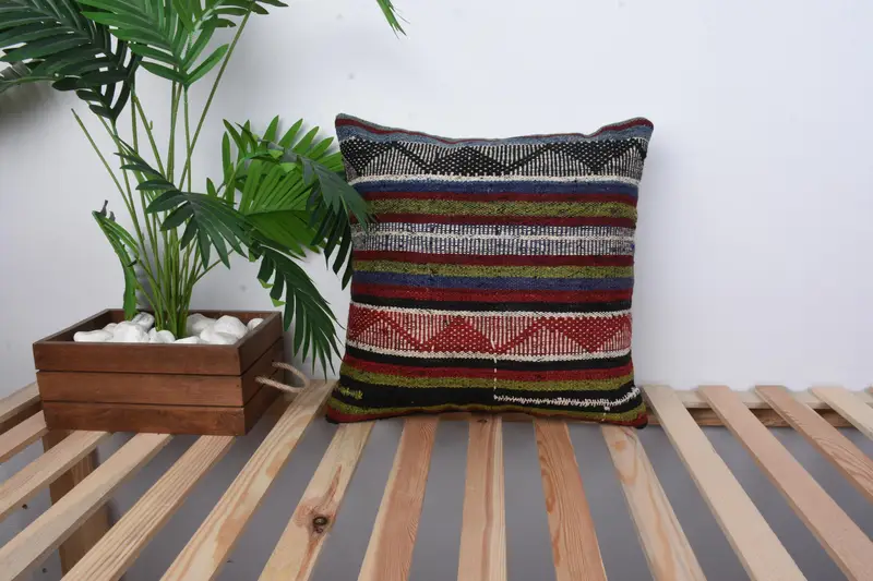 Handmade Embroidered Purple & Green Throw Pillow, Vintage Geometric Cushion