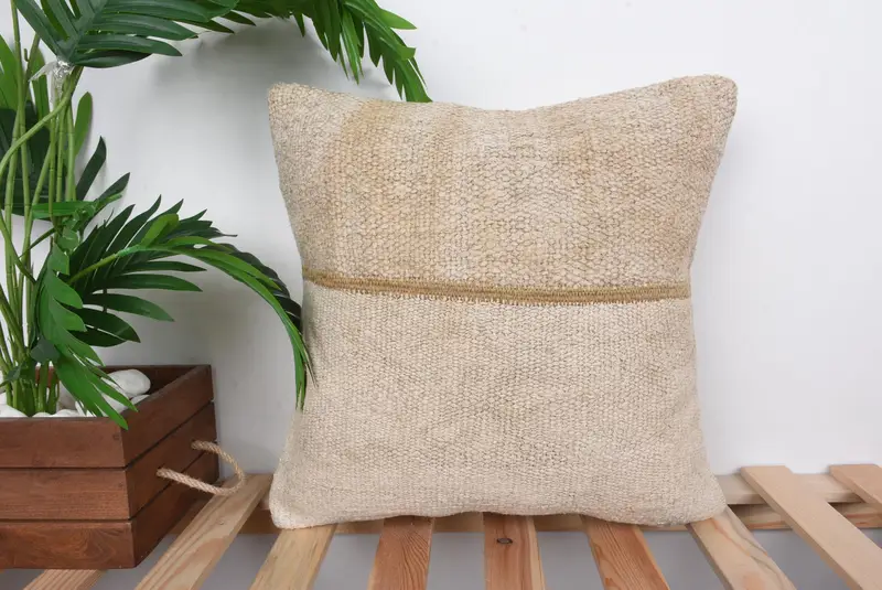 Beige Embroidered Patchwork Throw Pillow, Vintage Handmade Cushion